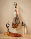 Enjoy our exclusive offer featuring Iberico Cebo Ham, a premium ham stand, and a precision slicing knife set.