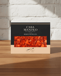 Patiently aged for 4 to 5 months, each batch is meticulously monitored to guarantee a perfect balance of flavours and a rich, savoury taste that will transport your senses to the heart of Spain.