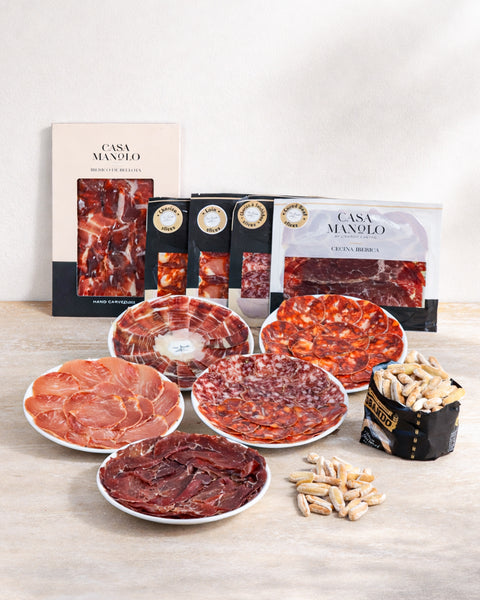 Spanish charcuterie including pork loin, chorizo, salchichon and cured meats, sourced directly from Spain.